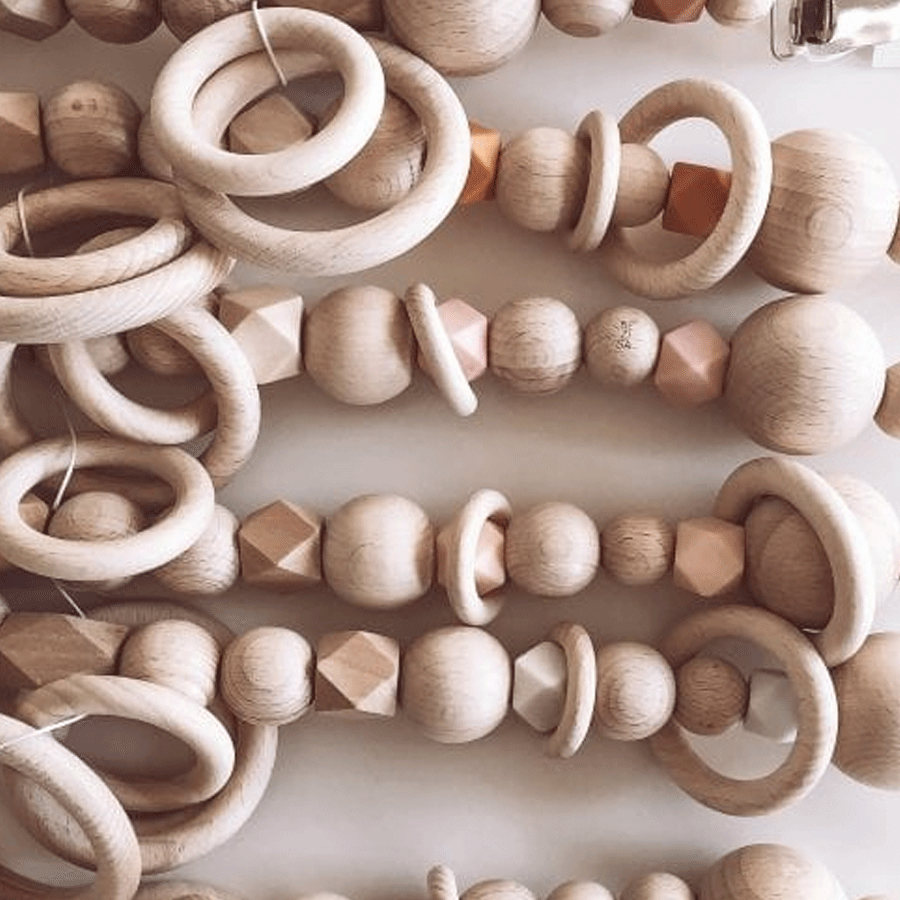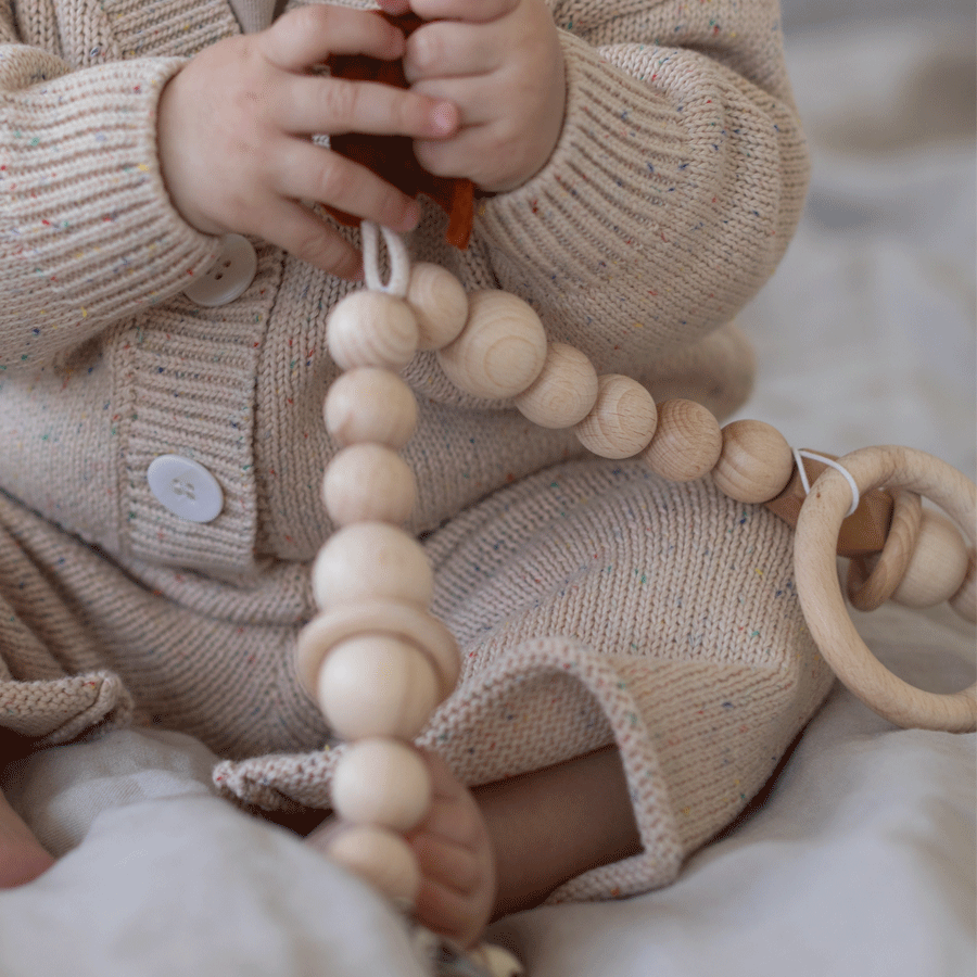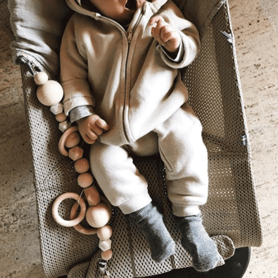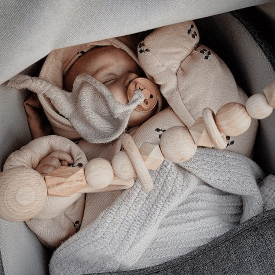 Handgefertigte Kinderwagenkette des niederländischen Familienunternehmens BEZISA. Diese Produkte bestehen aus sorgfältig ausgewählten Materialien und sind biss- & reißfest. Jeder Artikel enthält überraschende Elemente, die stundenlangen Spaß bieten und gleichzeitig die sensorische und motorische Entwicklung anregen. Da kommen alle kleinen RHEiNK I N D.er auf ihre Kosten. Durch das ruhige Design werden Babys nicht überreizt und ein ruhiger Schlaf ist möglich, ohne dass die Kette abgenommen werden muss. Der Klang & Griff naturbelassenen Holzes steigert das Spielvergnügen & ist gleichzeitig beruhigend.