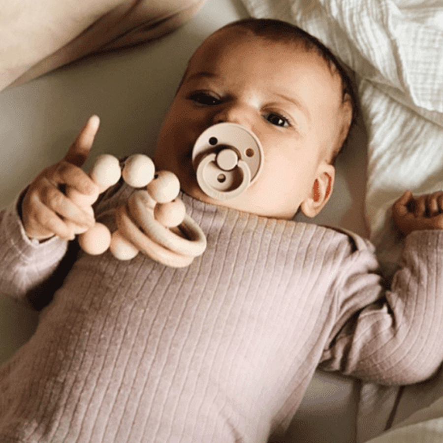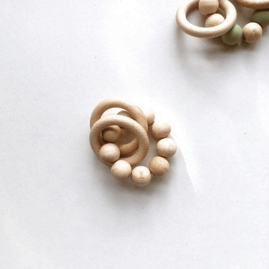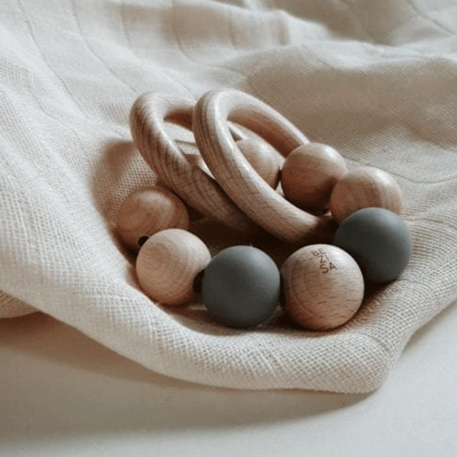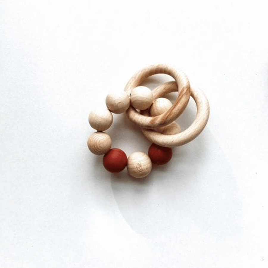 Ab einem Alter von ca. 3 Monten kann man unseren kleinsten RHEiNK I N D.ern ein Spielzeug in die Hand geben. Irgendwann werden sie feststellen, dass sie etwas in der Hand haben und nach und nach anfangen, immer mehr damit zu spielen. Wenn die Zähne durchkommen, mögen sie es meist, auf etwas festem herum zu beißen. Die Rassel besteht aus zertifizierten Holzperlen und Ringen kombiniert mit BPA freien Silikonperlen. Die gesamte Rassel hat einen Durchmesser von ca. 10 cm.