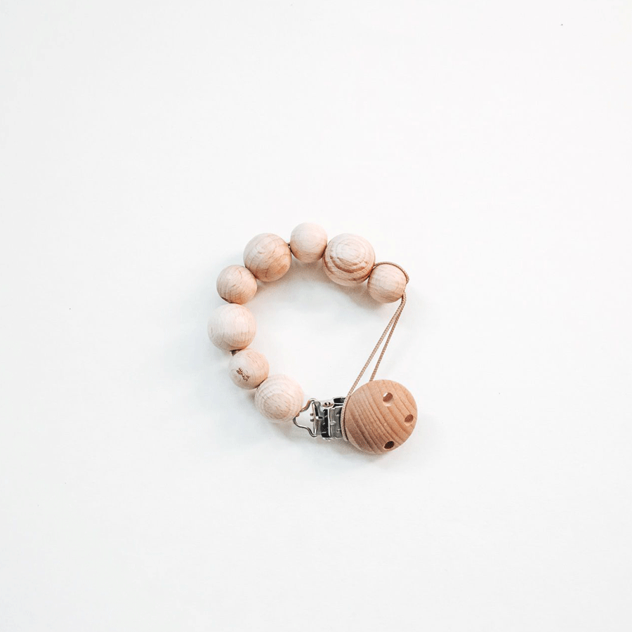 Handgemachte Schnullerkette des niederländischen Familienunternehmens BEZISA. Wunscherschön, einfach und so passend zu jedem Look! Die unbehandelten Perlen sind aus Birkenholz gefertigt und stammen aus nachhaltig bepflanzten Wäldern Europas. Diese Produkte sind biss- & reißfest. Durch das ruhige Design werden Babys nicht überreizt und ein ruhiger Schlaf ist möglich, ohne dass die Kette abgenommen werden muss. Der Klang & Griff naturbelassenen Holzes steigert das Spielvergnügen & ist gleichzeitig beruhigend.