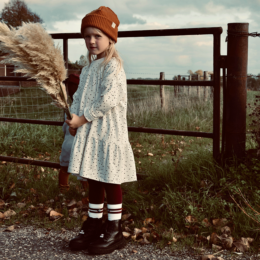 Schönster Jersey aus hochwertiger Biobaumwolle mit super softem Handfeel und angenehm weicher Oberfläche. Unser Volant Kleid | P I N A | wird definitiv das Lieblingskleid im Kleiderschrank deines Kindes sein. Lässig bequemer Style, mit überschnittener Schulter und cooler oversized Passform. | P I N A | wächst lange mit und kann sowohl im Sommer als auch im Winter zu dicker Strumpfhose und Boots getragen werden. Das Rippbündchen am Hals sorgt für einen flexiblen und schön anliegenden Abschluss.